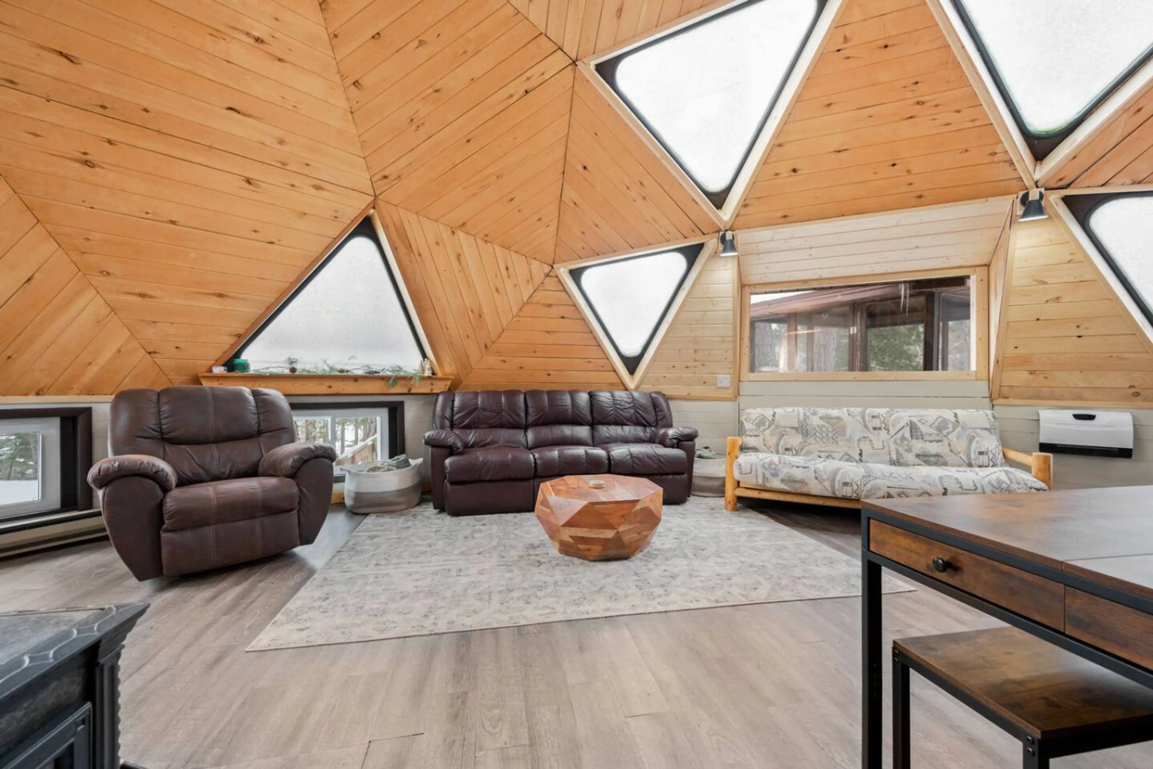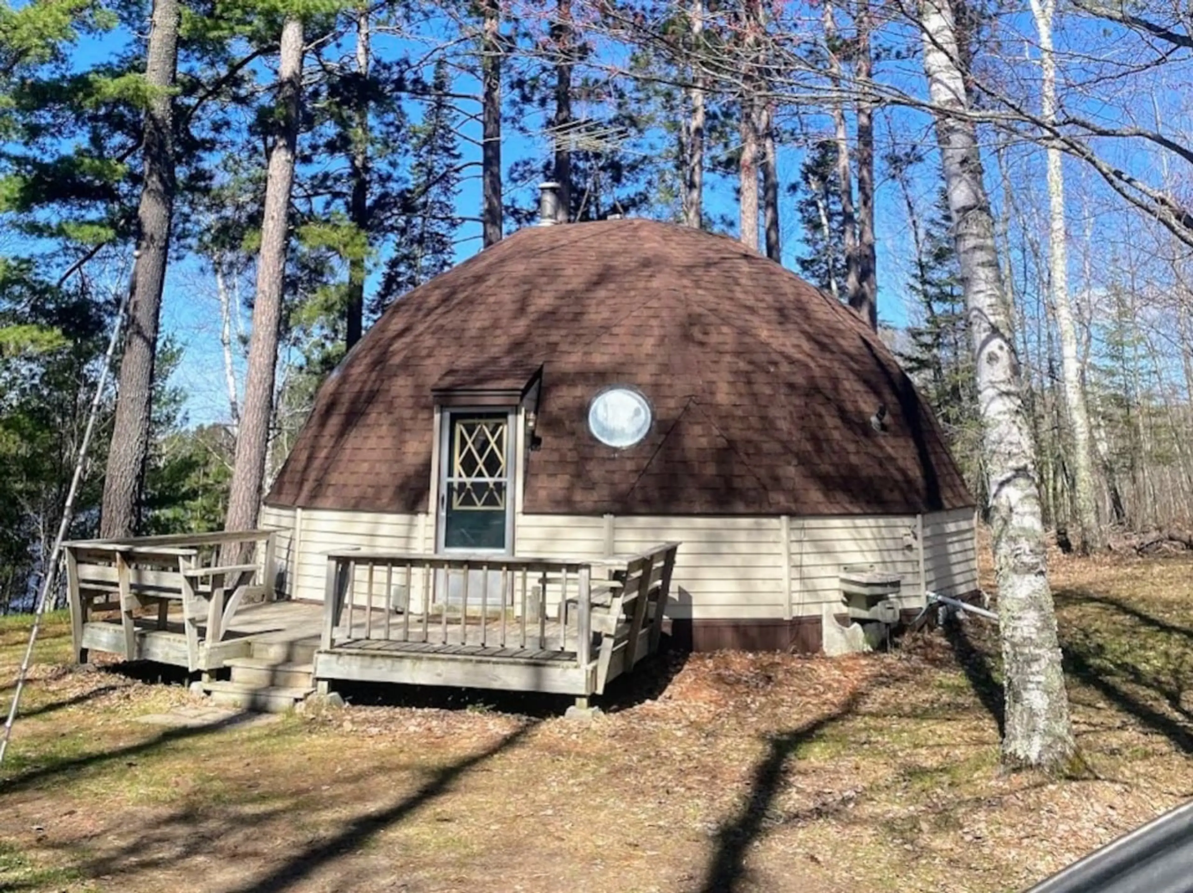 Soak up the beauty of Long Lake in the woods of Bigfork, MN in this unique Geodesic Dome Home. Enjoy 1 bedroom with king bed, open sleeping loft with two full beds, futon in the main room and full bath. Property is located on a hilltop boasting a west facing lake view with over 300' of lake front a...
